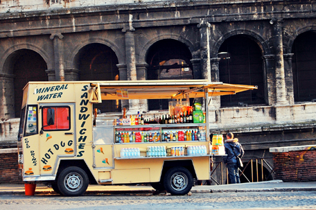 Sådana här matbilar finns lite överallt i Rom, så man behöver väldigt sällan vara utan mat. Dock så kan det vara lite klurigt att hitta något veganskt då det som sagt gärna ingår ost, men italienarna är väldigt serviceinriktade och hjälper gärna till. Därför brukar det inte vara några problem med att få en egendesignad macka om man nu inte tål eller äter något speciellt.
