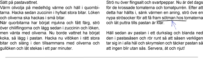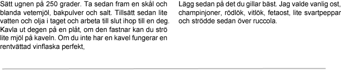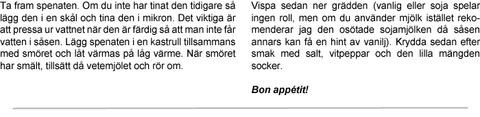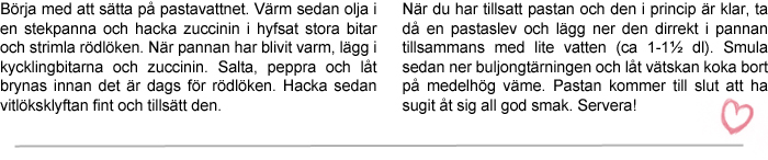 Ett par grundregler man alltid ska följa när man lagar mat är att först och främst krydda efter smak. Du kommer till exempel upptäcka att mina recept innehåller mycket vitlök och chili då det är ett par av mina favoritråvaror. Men om detta nu är något du inte föredrar så minska på mängden eller ta bort det. Matlagning handlar inte om att följa ett recept till punkt och pricka, utan se det snarare som något att utgå ifrån. Ha kul när du lagar mat, våga prova nya saker och experimentera! Hoppas att det smakar. |